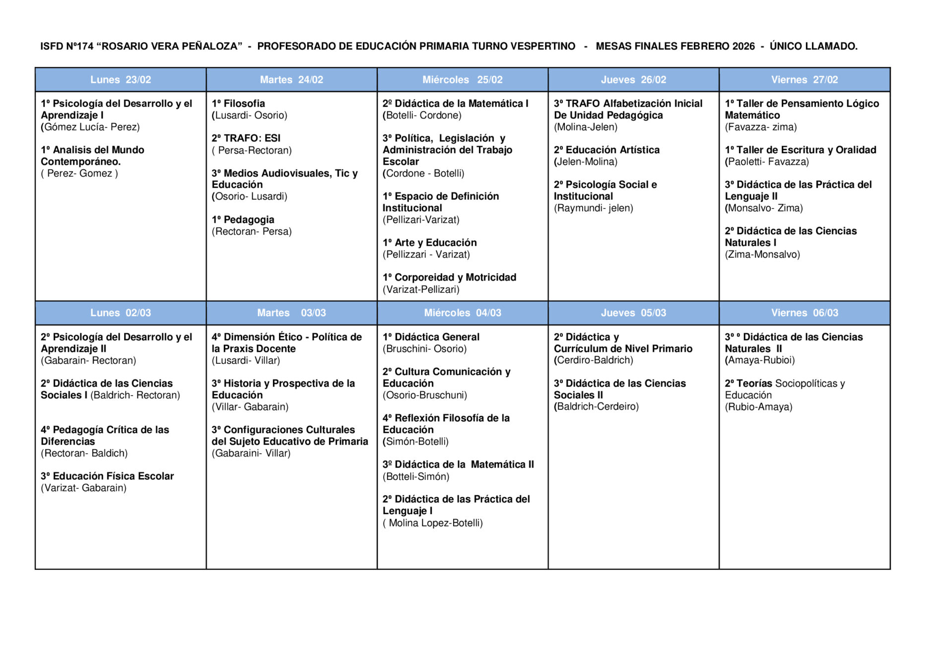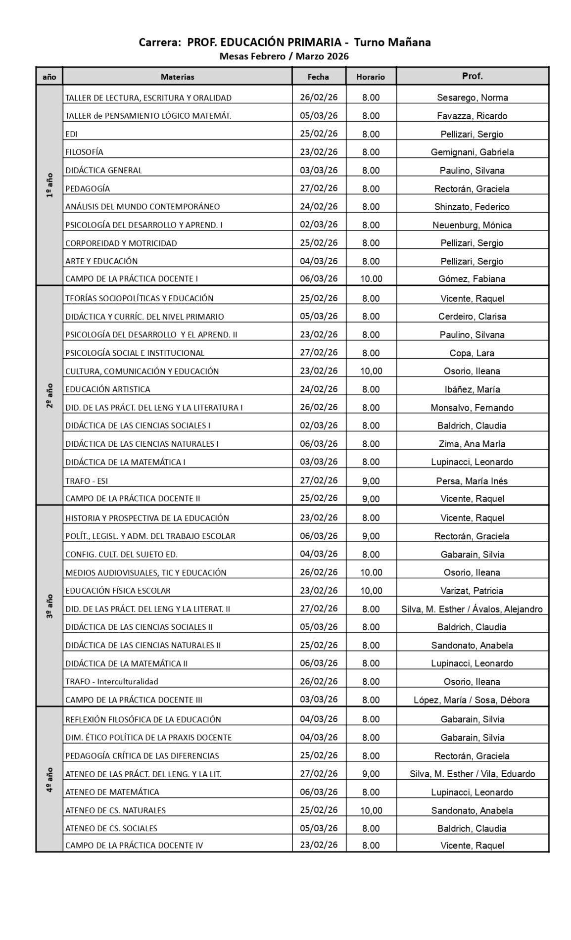 HORARIOS DE CURSADAS TODAS LAS CARRERAS